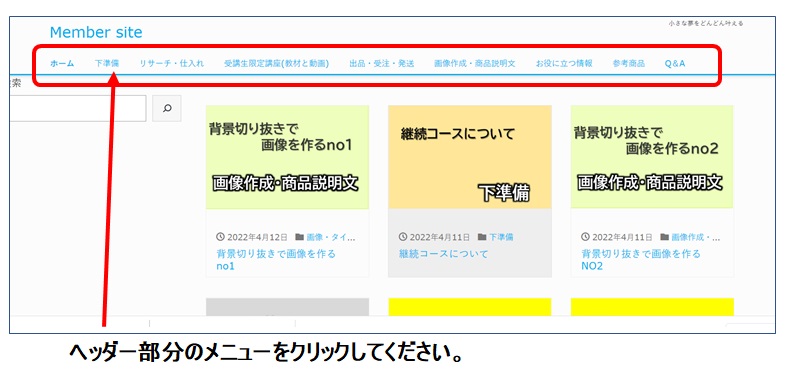 ヘッダーのメニューから探している項目、又はそれに近いものを見つけてください。